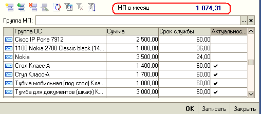 Создан справочник «Группы основных средств» – укрупненная позиция для того, чтобы объединить определенные ОС. Для каждого элемента задается его ориентировочная стоимость и срок службы.