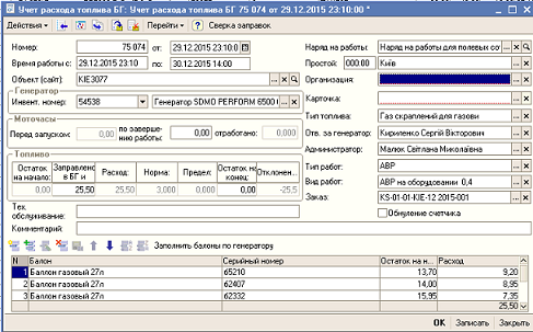 Учет газовых баллонов, передача пустых поставщику, заправки и отчеты по ним.