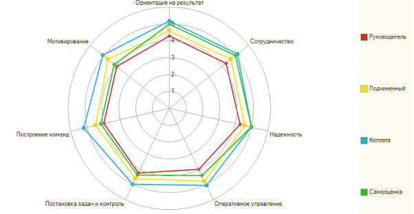 На каждого опрашиваемого создаются несколько опросов, которые отправляются на руководителя, подчиненного, коллег и опрос для самооценки.